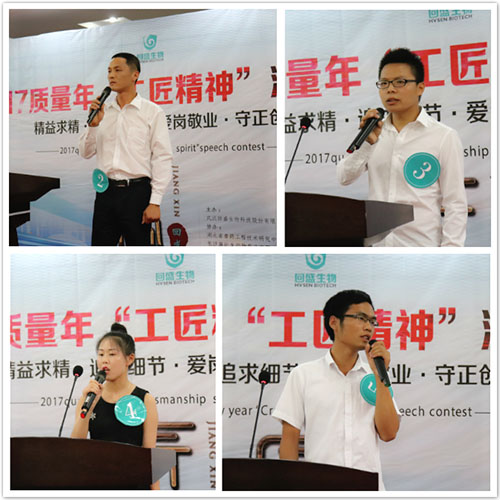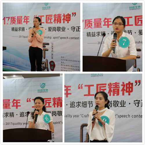 2017年7月21日,8868 - 看球聊球追世界杯就来8868体育有限公司官方网站2017质量年工匠精神演讲比赛在8868体育总部隆重举行,来自武汉8868 - 看球聊球追世界杯就来8868体育有限公司官方网站科技股份有限公司、长沙施比龙动物药业有限公司、武汉新华星动物保健连锁服务有限公司、湖北8868 - 看球聊球追世界杯就来8868体育有限公司官方网站科技有限公司的15位参赛选手展开激烈角逐,阐述他们心目中理解的“工匠精神”。出席本次活动的公司领导有8868 - 看球聊球追世界杯就来8868体育有限公司官方网站董事长张卫元、猪病研究院院长周锐、党委书记工会主席陈沛风、8868 - 看球聊球追世界杯就来8868体育有限公司官方网站副总经理刘洁、董事会秘书王天慧、财务总监杨凯杰、人力资源总监周健。