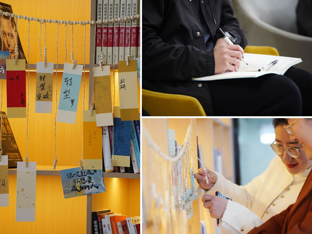 活动开场后,每位参与者以“2025年最想突破的职场关键词”为引,写下新年的成长期许。8868体育书友们将关键词书签悬挂于读书室主题墙,再以"可落地行动项+计划阅读书目"构建年度阅读企划。