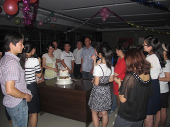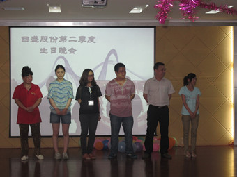 气球、彩带、蛋糕,这里是幸福的殿堂;欢声、笑语、音乐,这里是快乐的海洋;同事、朋友、兄弟姐妹,这里是温暖的归宿。其乐融融,共度温馨时光!
