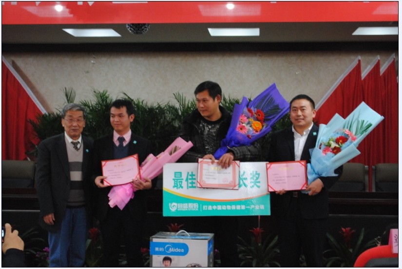 李兴飞,对于前两位获奖者来说,算一名新人。来公司不长,从饲料跨行到疫苗,最后落脚8868体育,在合肥市场,他要骑摩托车下猪场,风霜雨雪也是如此。小小的个子,撑起强有力的腰板,不怕苦不怕累,崎岖的道路不是他的障碍,靠两个轮子的摩托摘夺2013年度销售桂冠。